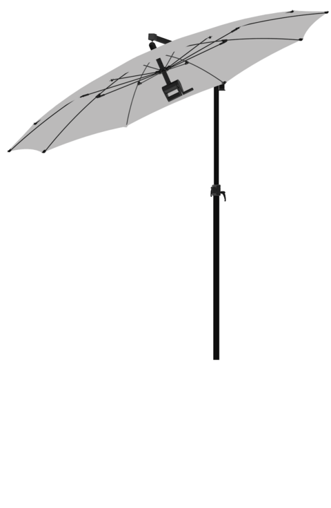 - das Kugelgelenk ermöglicht die stufenlose Neigung des Schirmteils in alle Richtungen bis 90°